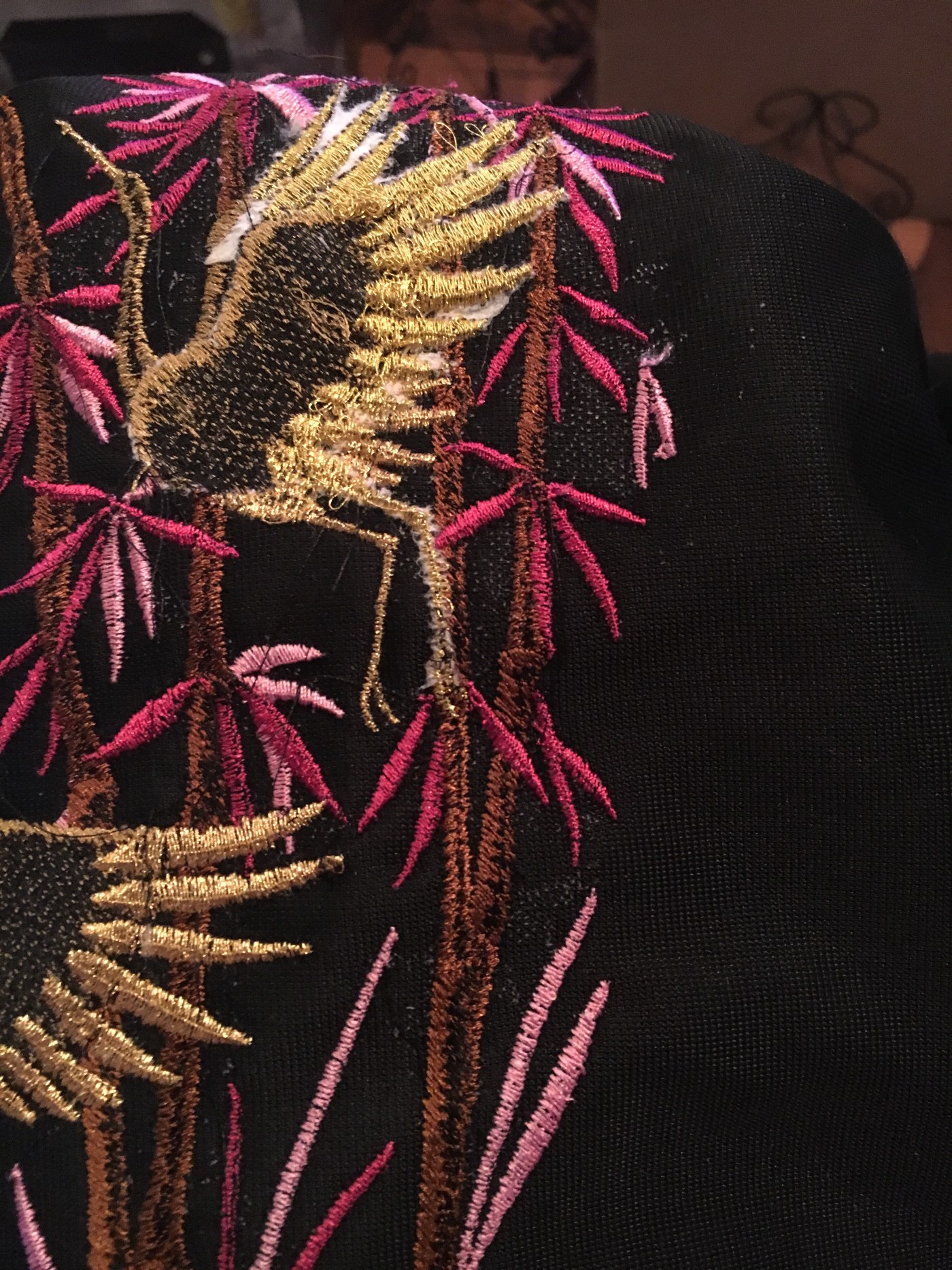 - At first I didn’t know you weren’t supposed to use the same bottom thread as the top thread. Many of my first designs were stiff and wrinkled because the design was too heavy for the fabric.